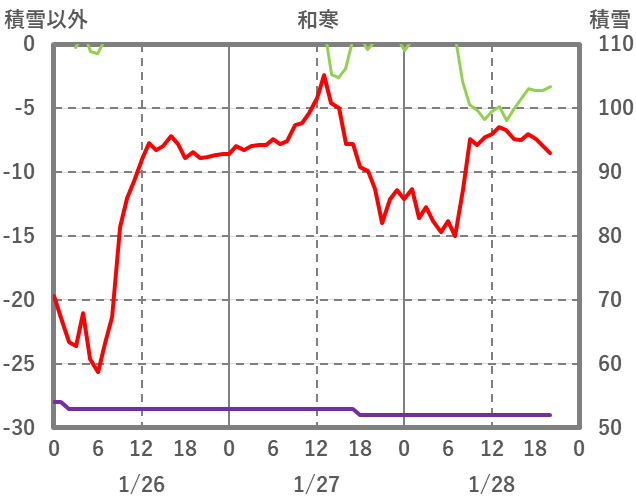 | 日 | 時 | 気温 | 降水 | 風向/風速 | 日照 | 積雪 | 降雪 |