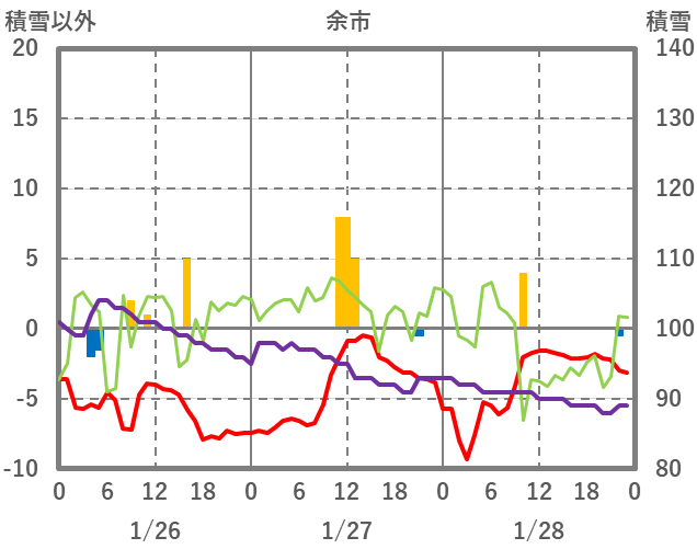 | 日 | 時 | 気温 | 降水 | 風向/風速 | 日照 | 積雪 | 降雪 |