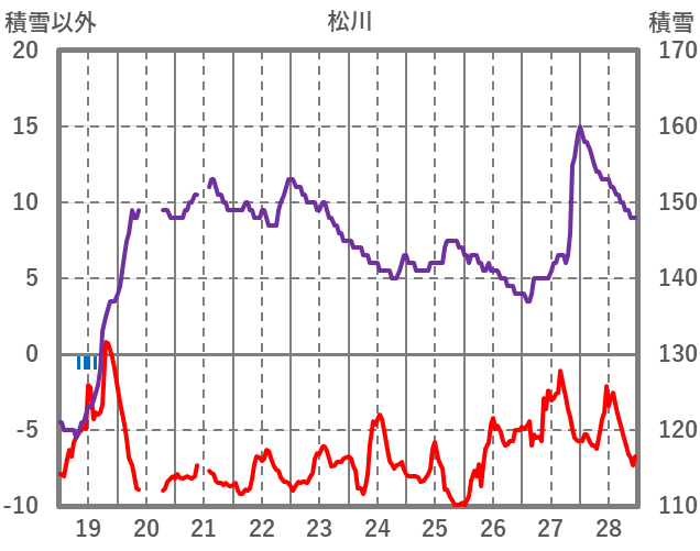 | 日 | 時 | 気温 | 降水 | 風向/風速 | 日照 | 積雪 | 降雪 |
