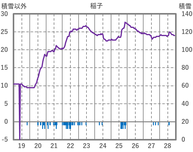 | 日 | 時 | 気温 | 降水 | 風向/風速 | 日照 | 積雪 | 降雪 |