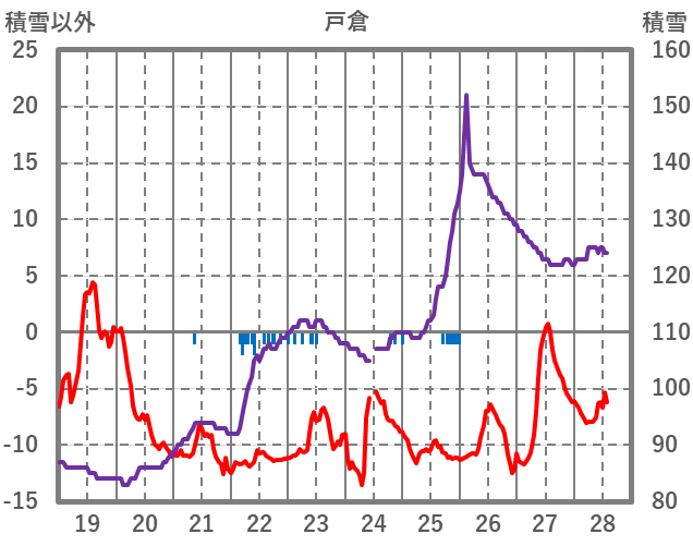 | 日 | 時 | 気温 | 降水 | 風向/風速 | 日照 | 積雪 | 降雪 |
