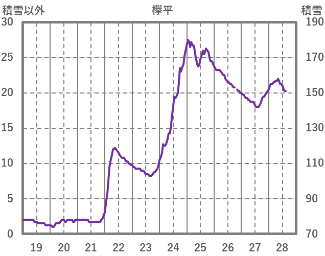| 日 | 時 | 気温 | 降水 | 風向/風速 | 日照 | 積雪 | 降雪 |