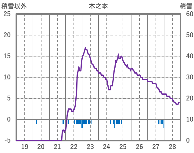 | 日 | 時 | 気温 | 降水 | 風向/風速 | 日照 | 積雪 | 降雪 |