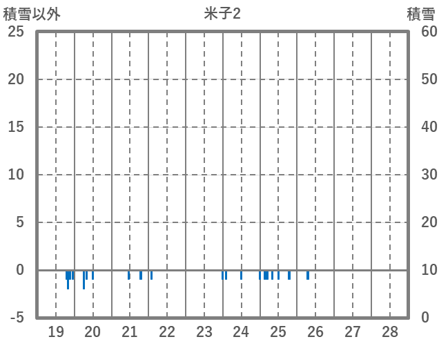 | 日 | 時 | 気温 | 降水 | 風向/風速 | 日照 | 積雪 | 降雪 |