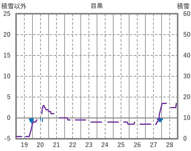 | 日 | 時 | 気温 | 降水 | 風向/風速 | 日照 | 積雪 | 降雪 |