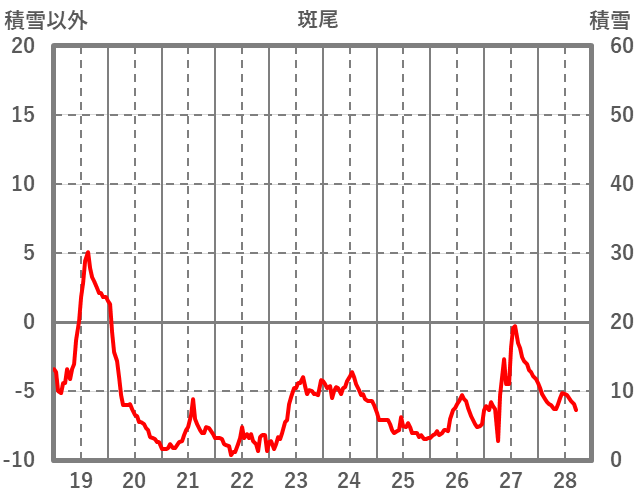 | 日 | 時 | 気温 | 降水 | 風向/風速 | 日照 | 積雪 | 降雪 |