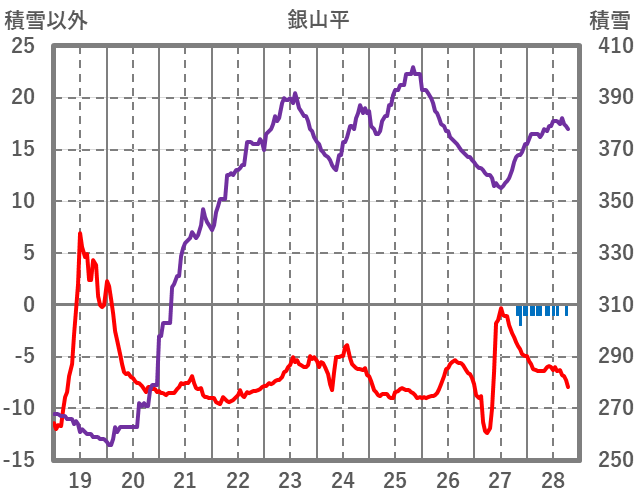 | 日 | 時 | 気温 | 降水 | 風向/風速 | 日照 | 積雪 | 降雪 |