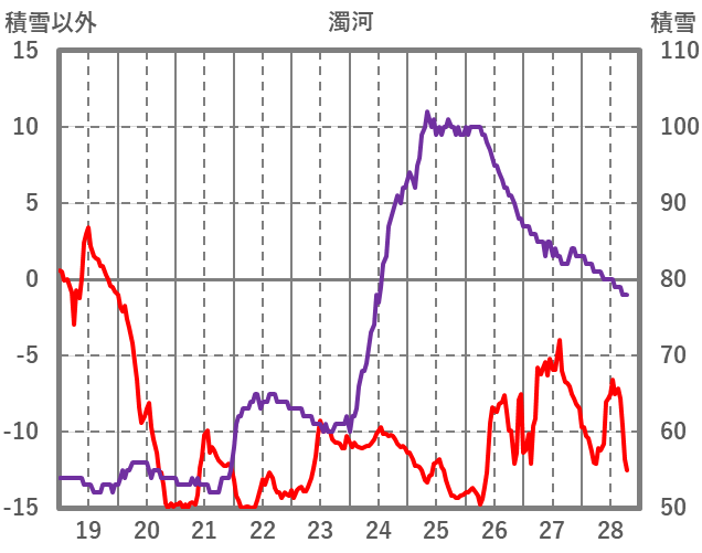 | 日 | 時 | 気温 | 降水 | 風向/風速 | 日照 | 積雪 | 降雪 |