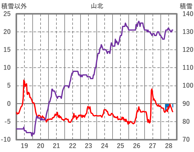 | 日 | 時 | 気温 | 降水 | 風向/風速 | 日照 | 積雪 | 降雪 |