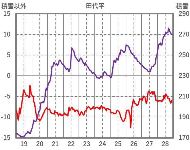 | 日 | 時 | 気温 | 降水 | 風向/風速 | 日照 | 積雪 | 降雪 |