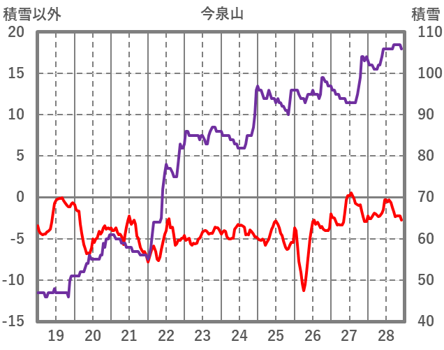 | 日 | 時 | 気温 | 降水 | 風向/風速 | 日照 | 積雪 | 降雪 |