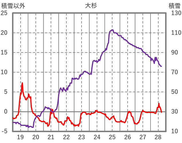 | 日 | 時 | 気温 | 降水 | 風向/風速 | 日照 | 積雪 | 降雪 |