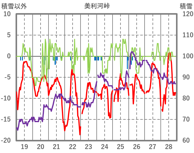 | 日 | 時 | 気温 | 降水 | 風向/風速 | 日照 | 積雪 | 降雪 |