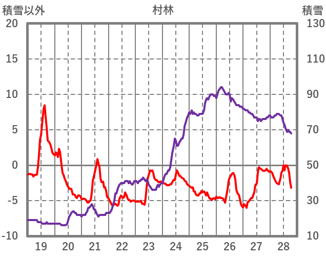 | 日 | 時 | 気温 | 降水 | 風向/風速 | 日照 | 積雪 | 降雪 |