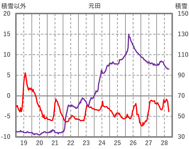 | 日 | 時 | 気温 | 降水 | 風向/風速 | 日照 | 積雪 | 降雪 |