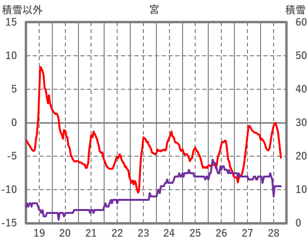 | 日 | 時 | 気温 | 降水 | 風向/風速 | 日照 | 積雪 | 降雪 |
