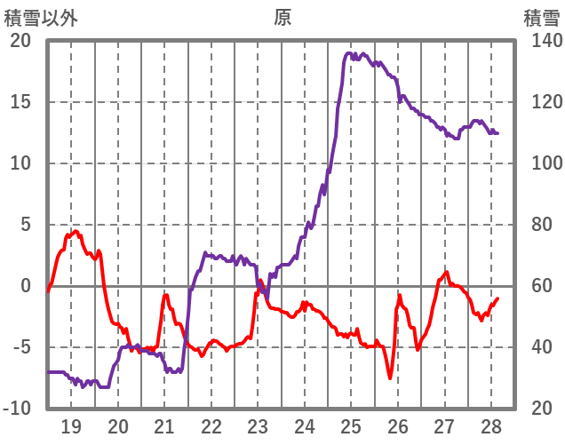 | 日 | 時 | 気温 | 降水 | 風向/風速 | 日照 | 積雪 | 降雪 |