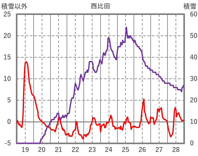 | 日 | 時 | 気温 | 降水 | 風向/風速 | 日照 | 積雪 | 降雪 |