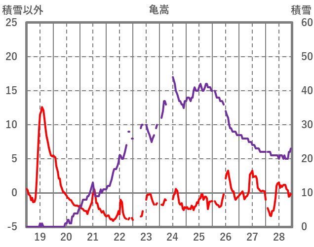 | 日 | 時 | 気温 | 降水 | 風向/風速 | 日照 | 積雪 | 降雪 |