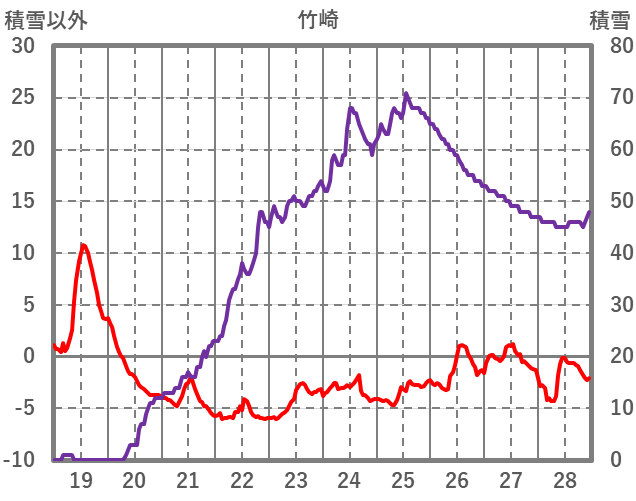| 日 | 時 | 気温 | 降水 | 風向/風速 | 日照 | 積雪 | 降雪 |