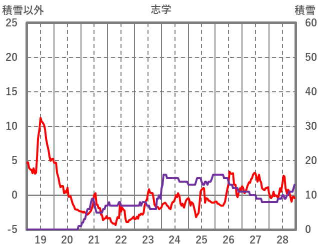 | 日 | 時 | 気温 | 降水 | 風向/風速 | 日照 | 積雪 | 降雪 |