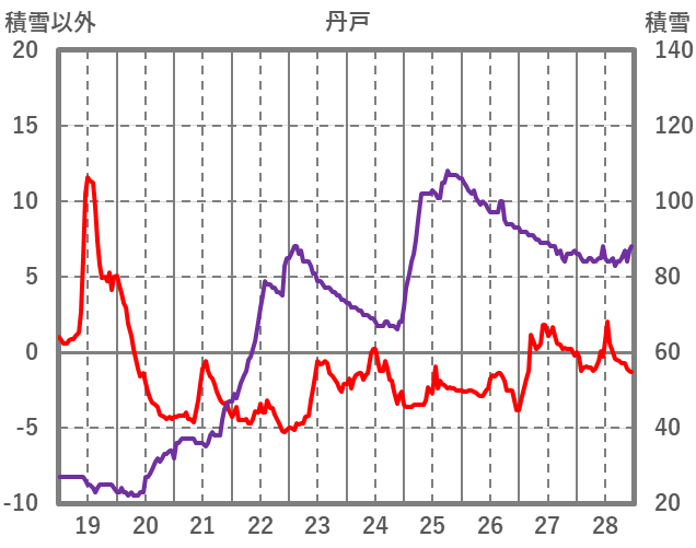 | 日 | 時 | 気温 | 降水 | 風向/風速 | 日照 | 積雪 | 降雪 |
