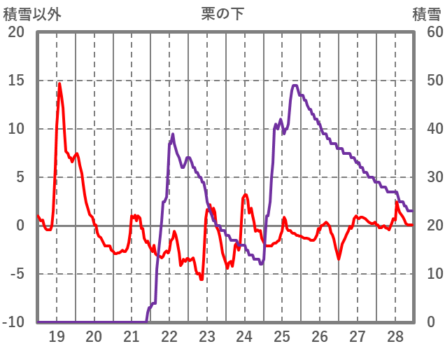 | 日 | 時 | 気温 | 降水 | 風向/風速 | 日照 | 積雪 | 降雪 |