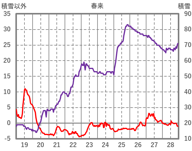 | 日 | 時 | 気温 | 降水 | 風向/風速 | 日照 | 積雪 | 降雪 |