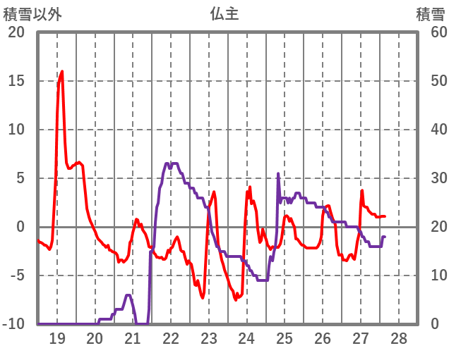 | 日 | 時 | 気温 | 降水 | 風向/風速 | 日照 | 積雪 | 降雪 |