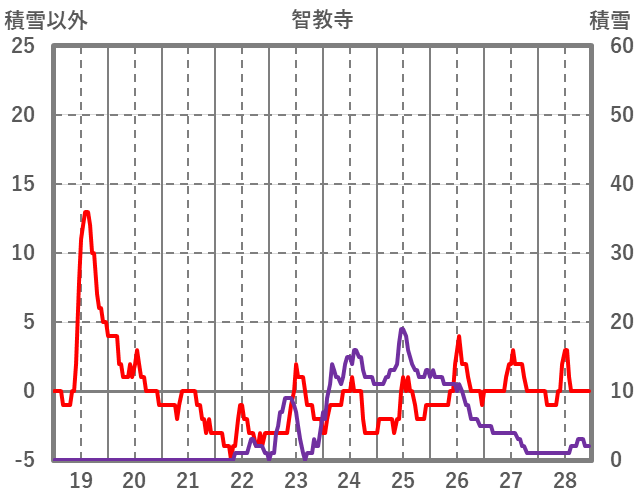 | 日 | 時 | 気温 | 降水 | 風向/風速 | 日照 | 積雪 | 降雪 |