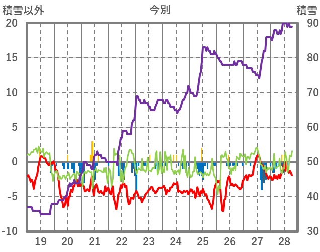 | 日 | 時 | 気温 | 降水 | 風向/風速 | 日照 | 積雪 | 降雪 |