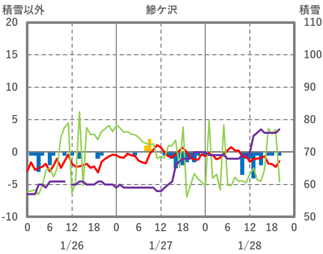 | 日 | 時 | 気温 | 降水 | 風向/風速 | 日照 | 積雪 | 降雪 |