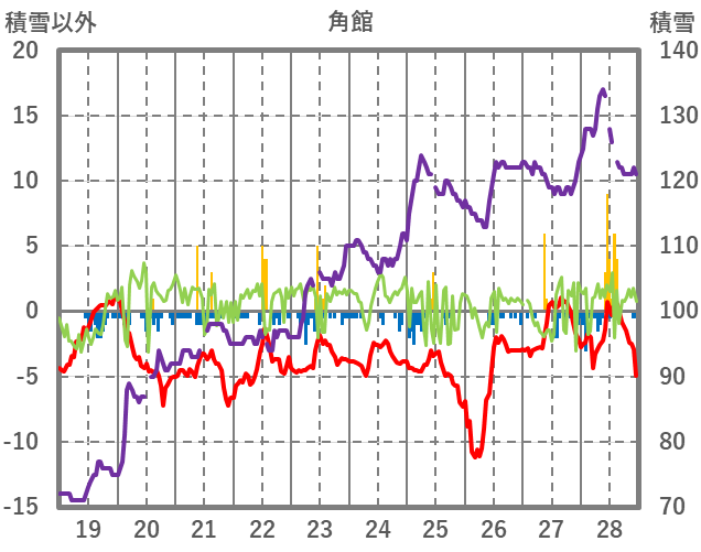 | 日 | 時 | 気温 | 降水 | 風向/風速 | 日照 | 積雪 | 降雪 |