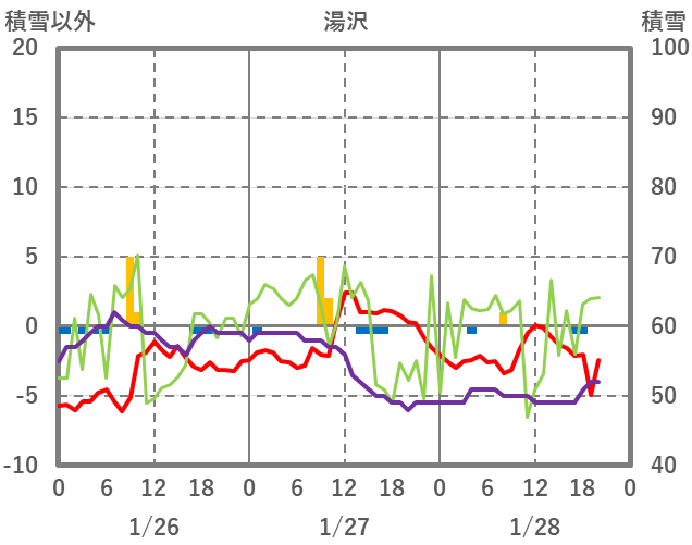 | 日 | 時 | 気温 | 降水 | 風向/風速 | 日照 | 積雪 | 降雪 |