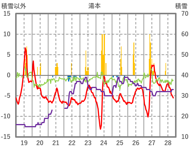 | 日 | 時 | 気温 | 降水 | 風向/風速 | 日照 | 積雪 | 降雪 |