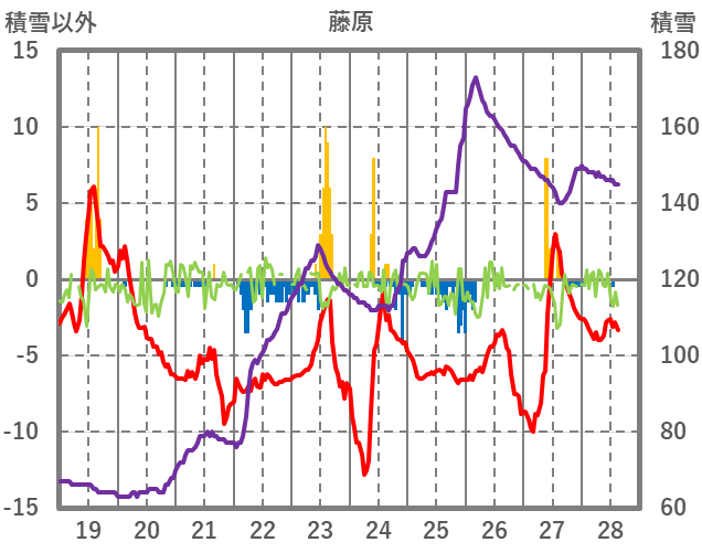 | 日 | 時 | 気温 | 降水 | 風向/風速 | 日照 | 積雪 | 降雪 |