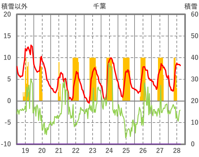 | 日 | 時 | 気温 | 降水 | 風向/風速 | 日照 | 積雪 | 降雪 |