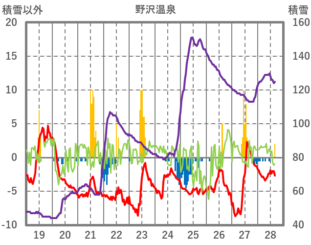 | 日 | 時 | 気温 | 降水 | 風向/風速 | 日照 | 積雪 | 降雪 |