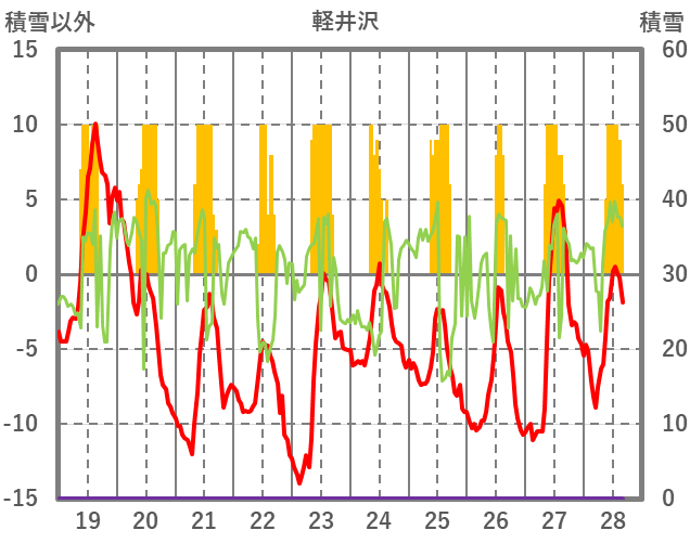 | 日 | 時 | 気温 | 降水 | 風向/風速 | 日照 | 積雪 | 降雪 |