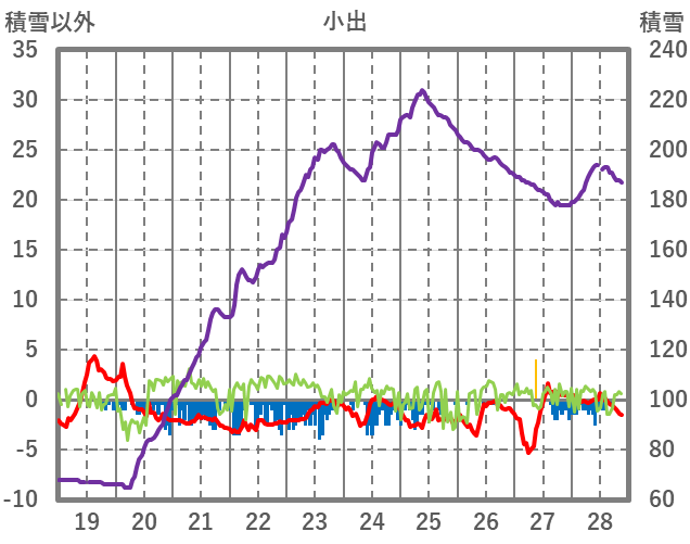 | 日 | 時 | 気温 | 降水 | 風向/風速 | 日照 | 積雪 | 降雪 |
