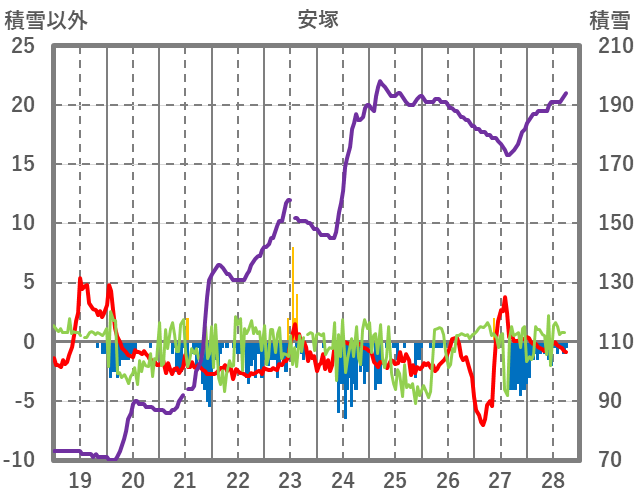 | 日 | 時 | 気温 | 降水 | 風向/風速 | 日照 | 積雪 | 降雪 |