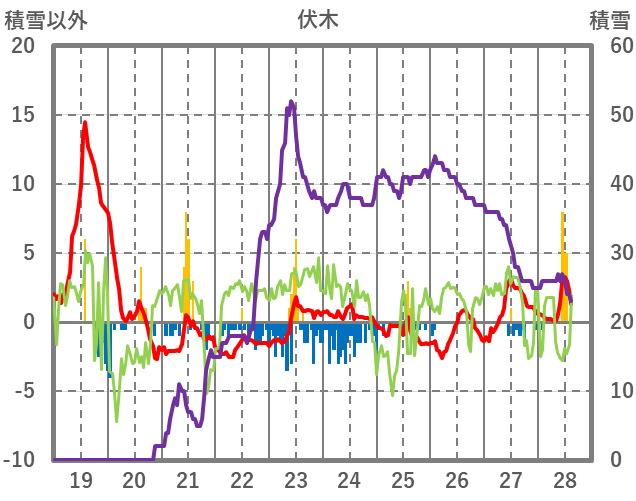 | 日 | 時 | 気温 | 降水 | 風向/風速 | 日照 | 積雪 | 降雪 |