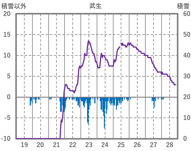 | 日 | 時 | 気温 | 降水 | 風向/風速 | 日照 | 積雪 | 降雪 |