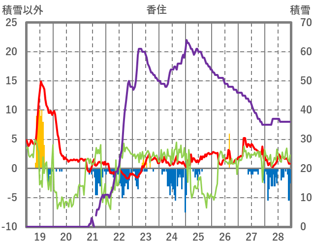 | 日 | 時 | 気温 | 降水 | 風向/風速 | 日照 | 積雪 | 降雪 |