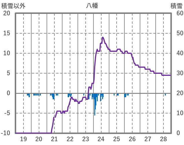 | 日 | 時 | 気温 | 降水 | 風向/風速 | 日照 | 積雪 | 降雪 |