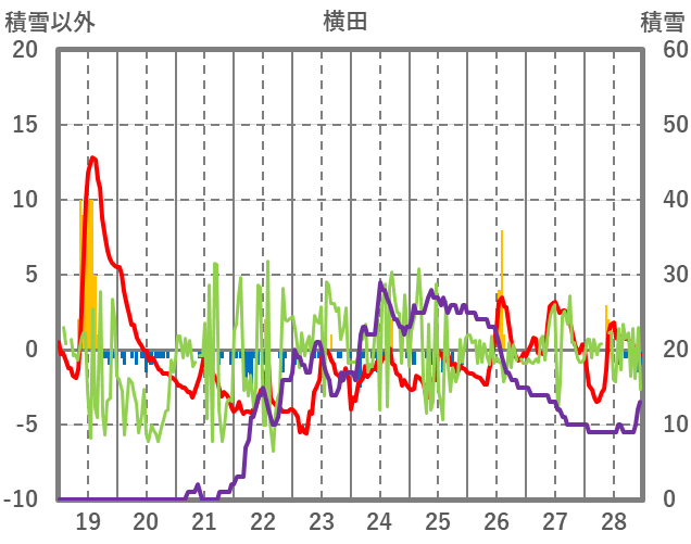 | 日 | 時 | 気温 | 降水 | 風向/風速 | 日照 | 積雪 | 降雪 |