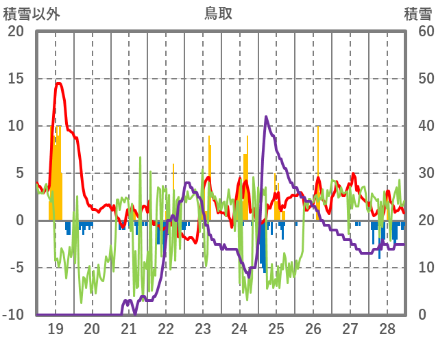 | 日 | 時 | 気温 | 降水 | 風向/風速 | 日照 | 積雪 | 降雪 |