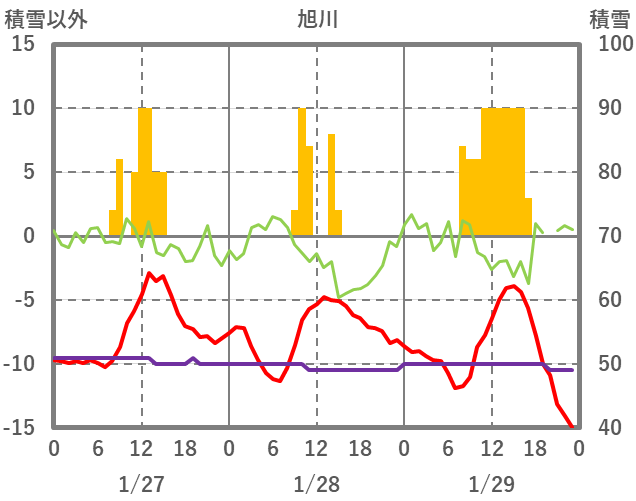 | 日 | 時 | 気温 | 降水 | 風向/風速 | 日照 | 積雪 | 降雪 |