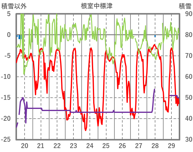 | 日 | 時 | 気温 | 降水 | 風向/風速 | 日照 | 積雪 | 降雪 |