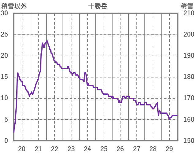 | 日 | 時 | 気温 | 降水 | 風向/風速 | 日照 | 積雪 | 降雪 |